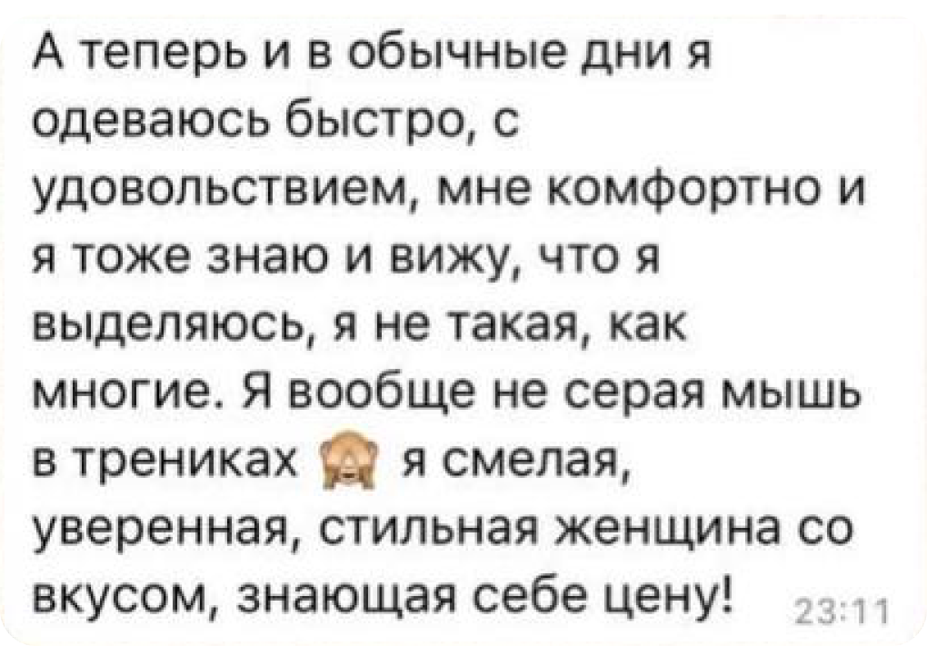 и рост от 151 до 193 см - в моей практике успешные кейсы клиенток с самыми разными фигурами.